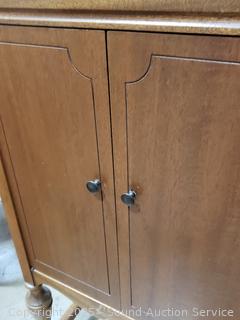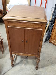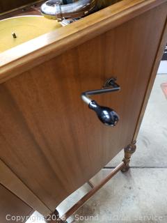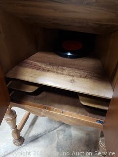 Mahogany cabinet, in great condition, see a few scuffs. Everything appears to be functioning as intended. 37" H x 19" W x 19.75".