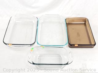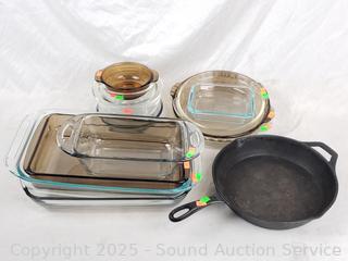 Lot #0157: Assorted Pyrex Bakeware & Cast Iron Skillets