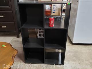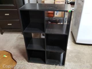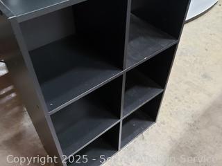 Lot #0110: Black Laminate 6-Cubby Shelving Unit
