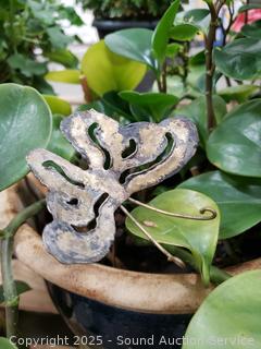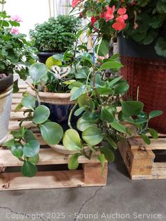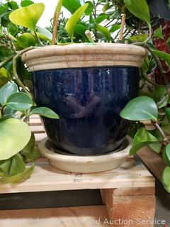 Pottery pot, 11" H x 12" Dia. If you want to see this little guy grow up and be an adult rubber plant you will bid! Dun, dun, duhN!