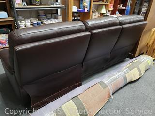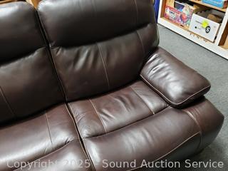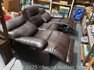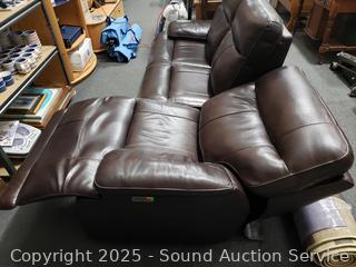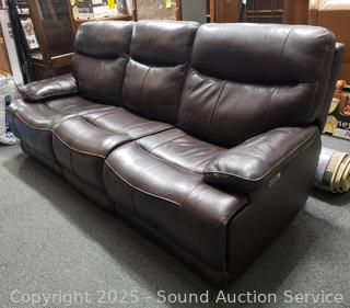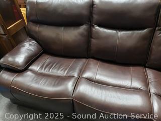 Lot #0001: Brown Leather Power Reclining Sofa - Works