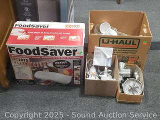 Lot #0019: Foodsaver Vacuum Sealer, Meat Grinder, Glassware