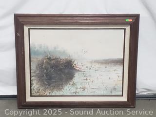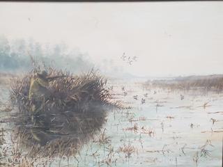 Lot #0069: Original Signed Duck Hunting Oil Painting