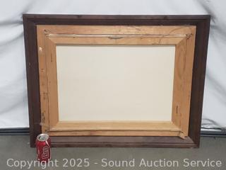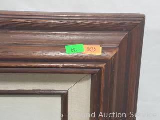 Refer to photos for signature. Dated 1986. 25" x 31" overall. Some scuffs on wood frame.