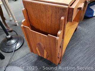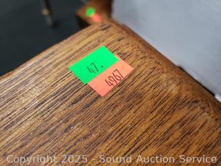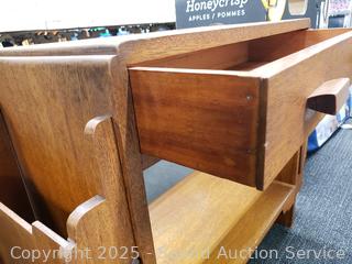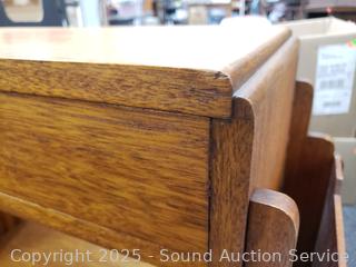 Solid wood construction. A minor scuffs, dings. 24" H x 31" W x 12.25" D.