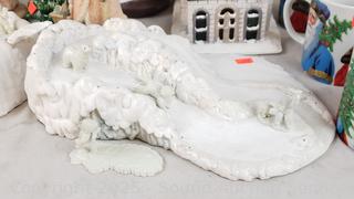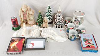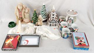 Mugs, gift cards, tree decor, snowglobes, etc. Refer to photos for lot contents, more details.