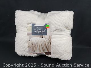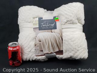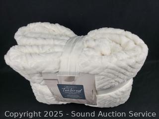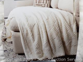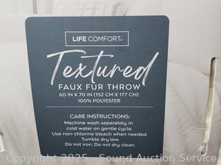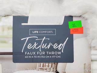 Lot #0035: Life Comfort Textured Faux Fur White Throw Blanket