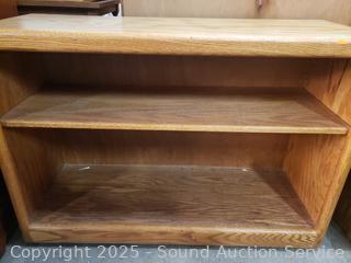 Appears to be all wood construction. Adjustable shelf. 25" H x 35.25" W x 12.75" D.