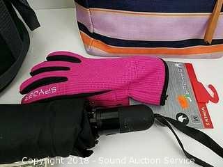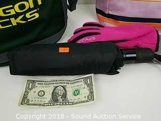 Lot #0005: (2) Soft Coolers, Gloves & Umbrella