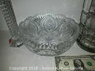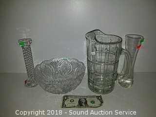 Lot #0314: Crystal & Glass Vases, Pitcher & Console Bowl