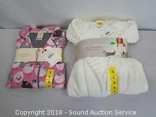 Lot #0305: NWT Plush Wrap Robe & Flannel Sleepwear Set - S