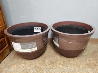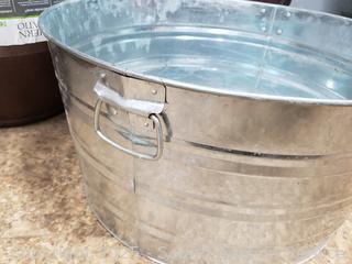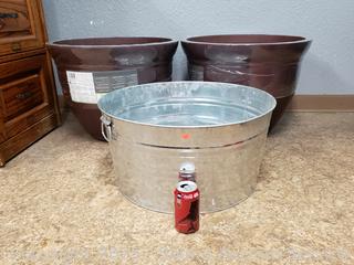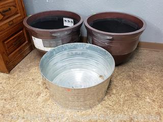 Lot #0270: 15 Gallon Galvanized Tub & 2 Composite 22" Planter Pots