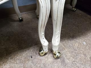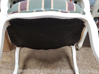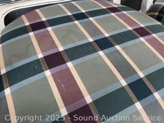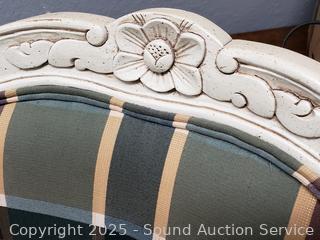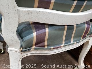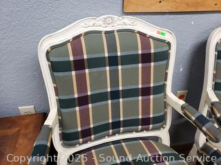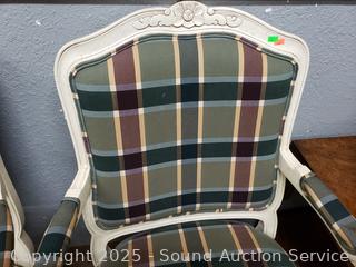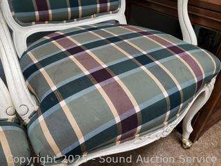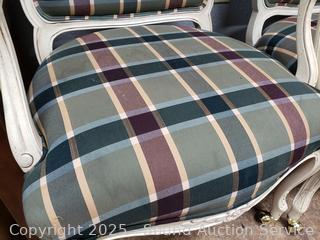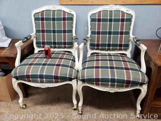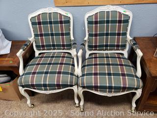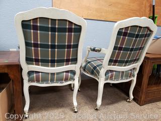 Lot #0279: 2 Ivory Plaid Upholstered Rolling Armchairs