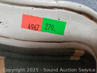 Some stains in upholstery, scuffs, dings. 39" H x 25" W x 19" to seat.