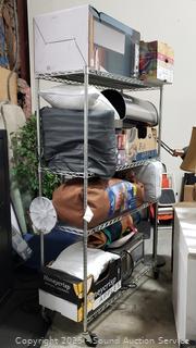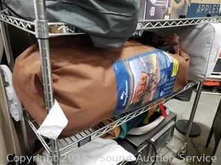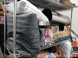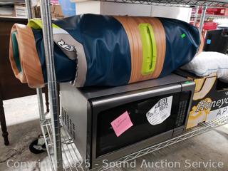 Tower fan, stainless steel step trash bins, pillows, microwave, paddleboard, air mattress, etc. ATTN: All items are used, may be missing pieces, damaged, not functioning, complete, no issues, etc. All items as is. Refer to photos for more details.