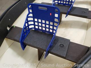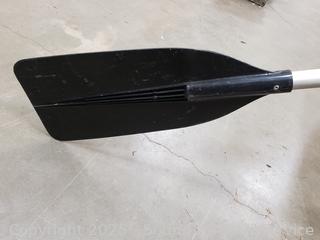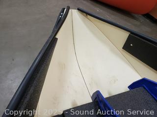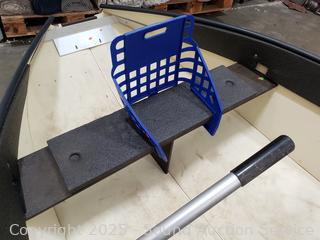 Missing hardware for seats & motor mount otherwise appears to be complete with seats, paddles, motor mount. Some scuffs, wear to finish.