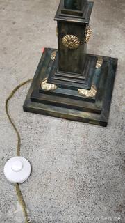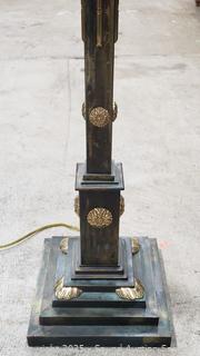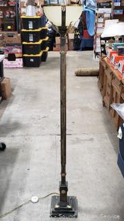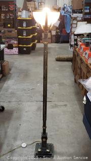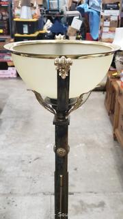 Lot #0017: Distressed Metal & Brass Base & Glass Shade Floor Lamp