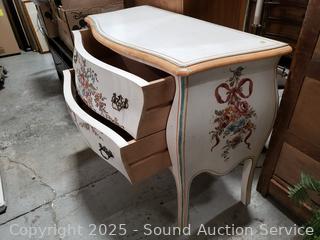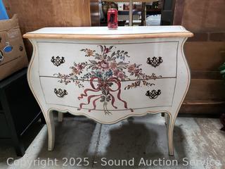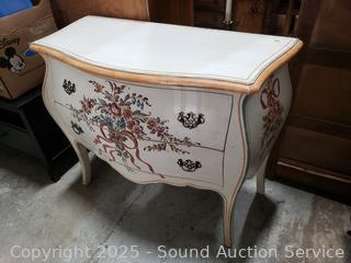 Lot #0033: Ivory Floral Painted 2-Drawer Bombay Chest