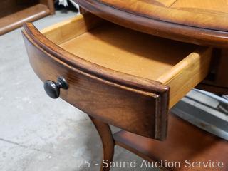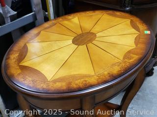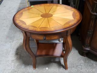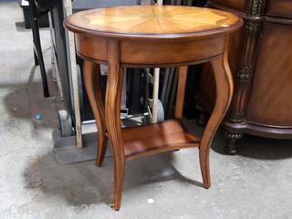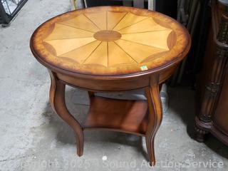 Lot #0008: Medium Finish Inlaid 2-Tier Accent Table