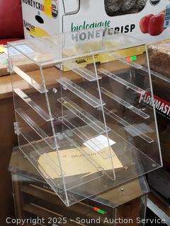 Acrylic 16" H x 14.75" W x 14.75" D. Carousel 26" H x 18.25" Dia.