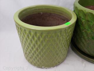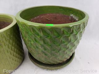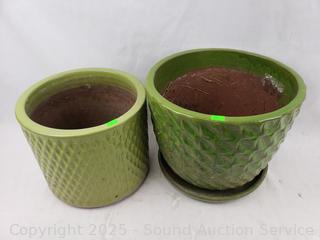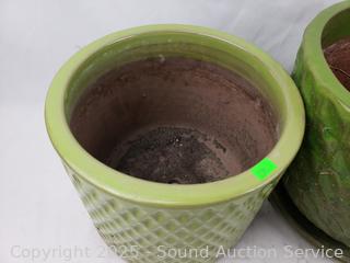 Lot #0239: 2 Green Ceramic Planter Pots