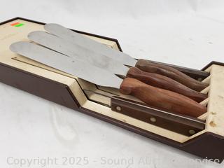 (3) #28 spreader knives, #33 9" knife, #34 9.5" slicing knife.