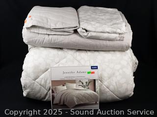 Lot #0036: 6pc Jennifer Adams Reversible Queen Comforter Set