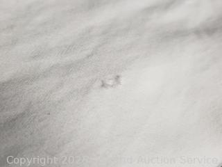 1 flat, 1 fitted, 4 pillowcases. Some loose threads, one pillowcase has a small hole.