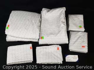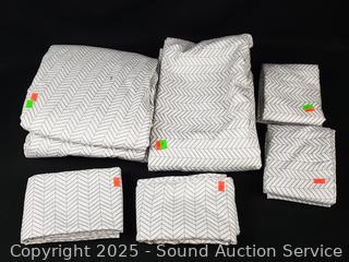 1 flat, 1 fitted, 4 pillowcases. Don't see any issues.