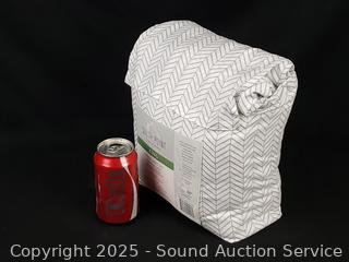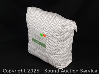 1 flat, 1 fitted, 4 pillowcases. Chevron gray print.