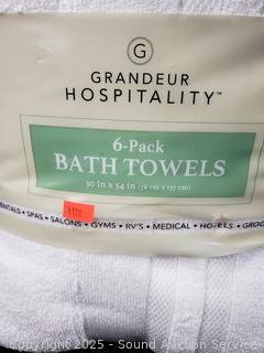 Lot #0009: 6pk Grandeur Hospitality White Cotton Bath Towels