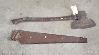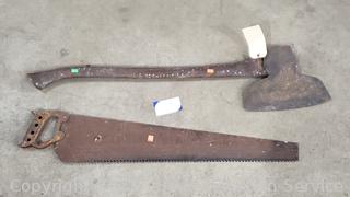 Lot #0297: Antique 1865 Canada Pattern Broad Axe & Ice Saw