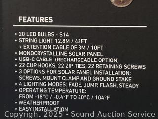 Lot #0226: Artika Solar Blaze 42ft Solar Outdoor String Lights