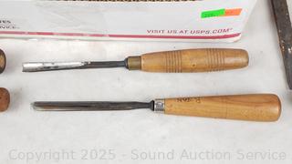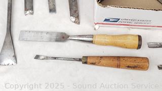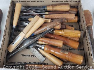 323 Lots including Gun Safe, Tables & Chairs, Cherry Queen Sleigh Bed, Twin Bed, 15ft Chair Stair Lift, Lawn & Garden Tools, Assorted Kitchen Cutlery, Tons of Various Tools (Hand Saws, Files, Chisels, Braces, Clamps. Etc), Woven Baskets, Military Buttons, Scissors, Footwear, Bedding, Planter Pots, Bookshelves, Household Goods & More!!!