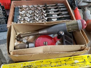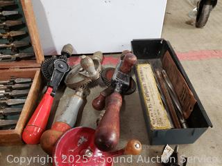 323 Lots including Gun Safe, Tables & Chairs, Cherry Queen Sleigh Bed, Twin Bed, 15ft Chair Stair Lift, Lawn & Garden Tools, Assorted Kitchen Cutlery, Tons of Various Tools (Hand Saws, Files, Chisels, Braces, Clamps. Etc), Woven Baskets, Military Buttons, Scissors, Footwear, Bedding, Planter Pots, Bookshelves, Household Goods & More!!!