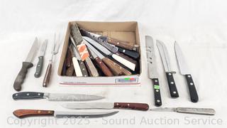 323 Lots including Gun Safe, Tables & Chairs, Cherry Queen Sleigh Bed, Twin Bed, 15ft Chair Stair Lift, Lawn & Garden Tools, Assorted Kitchen Cutlery, Tons of Various Tools (Hand Saws, Files, Chisels, Braces, Clamps. Etc), Woven Baskets, Military Buttons, Scissors, Footwear, Bedding, Planter Pots, Bookshelves, Household Goods & More!!!