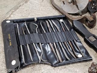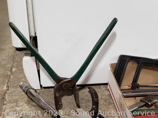 323 Lots including Gun Safe, Tables & Chairs, Cherry Queen Sleigh Bed, Twin Bed, 15ft Chair Stair Lift, Lawn & Garden Tools, Assorted Kitchen Cutlery, Tons of Various Tools (Hand Saws, Files, Chisels, Braces, Clamps. Etc), Woven Baskets, Military Buttons, Scissors, Footwear, Bedding, Planter Pots, Bookshelves, Household Goods & More!!!