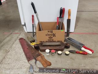 Lot #0313: Assorted Sharpening Stones, Honing Rods, Leather Strops