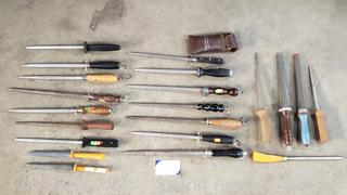 323 Lots including Gun Safe, Tables & Chairs, Cherry Queen Sleigh Bed, Twin Bed, 15ft Chair Stair Lift, Lawn & Garden Tools, Assorted Kitchen Cutlery, Tons of Various Tools (Hand Saws, Files, Chisels, Braces, Clamps. Etc), Woven Baskets, Military Buttons, Scissors, Footwear, Bedding, Planter Pots, Bookshelves, Household Goods & More!!!