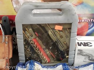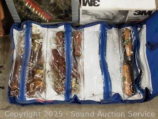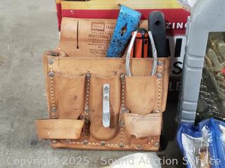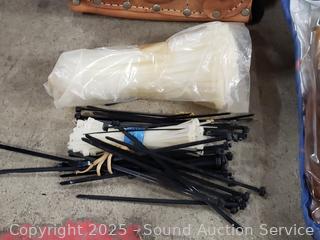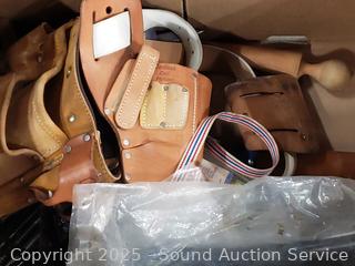 Lot #0322: Leather Tool Belts, Scissors, Bolts, Zip Ties, Sockets, Etc