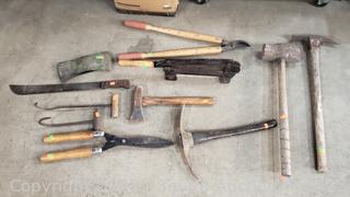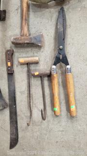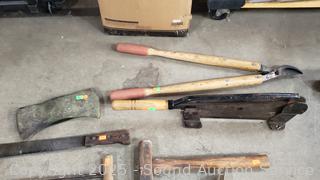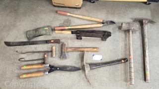 Lot #0135: Mallet, Loppers, Mattock, Hay Hook, etc