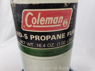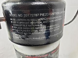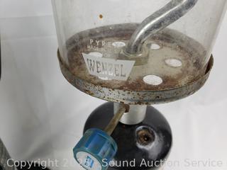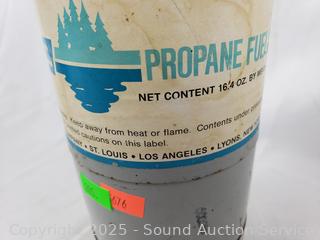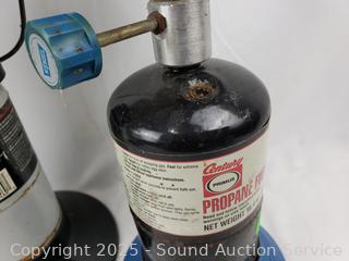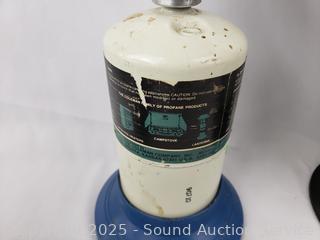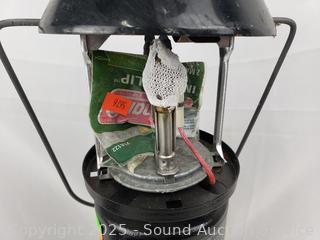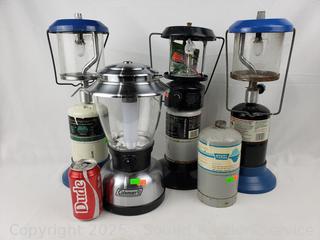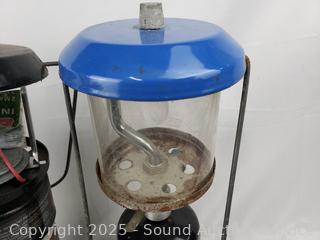 Propane units are untested, 1 is missing the glass. Coleman battery lantern works. Fuel tanks feel empty.