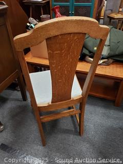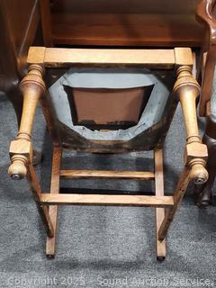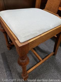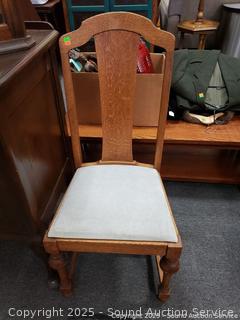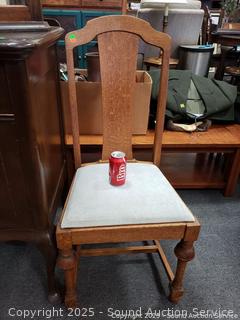 Lot #0321: Antique Oak Turned Leg Upholstered Chair