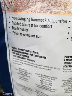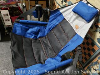Small 2" tear in seam underneath left armrest. Otherwise good condition.