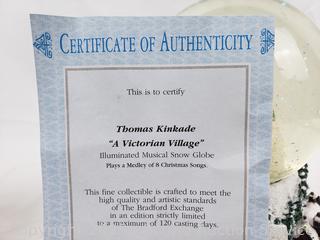 Lot #0171: Thomas Kinkade "Victorian Village" Musical Snow Globe w/COA
