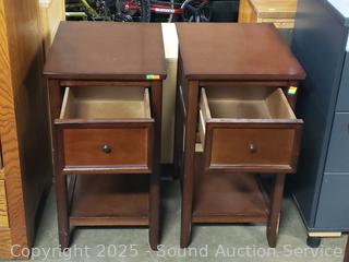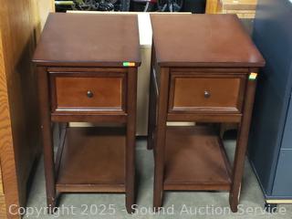 Lot #0016: 2 Dark Finish Single Drawer Side Tables