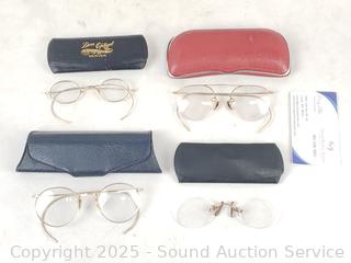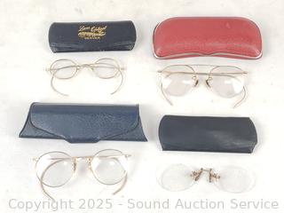 Lot #0257: 4 Pairs of Vintage Spectacles/Eyeglasses