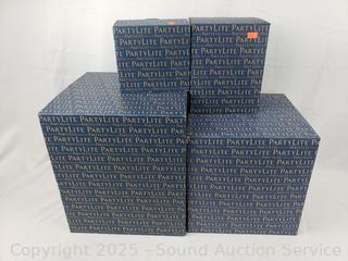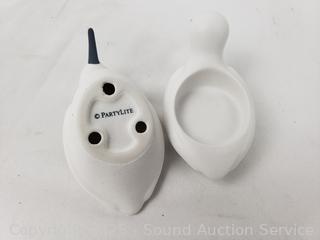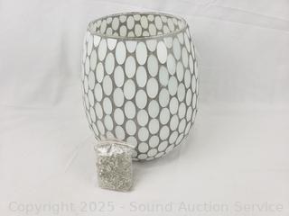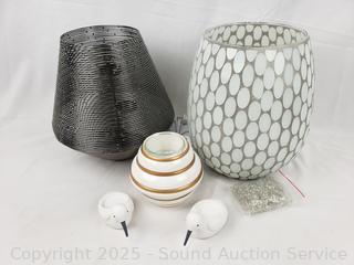 Sandpiper Tealight Holder Pair, Scent Glow Warmer Diffuser, Spun Wire Hurricane, Champagne Glow Hurricane.