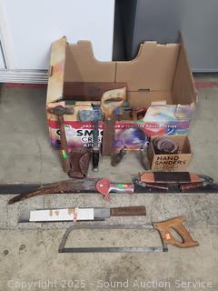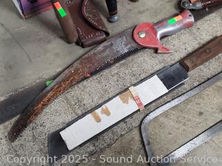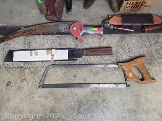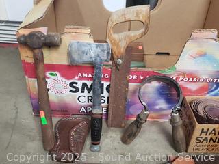 Draw knives, hatchet, mallet, handsaw, hammer, etc.