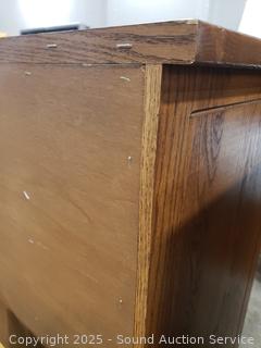 In great condition. Appears to be all wood construction. 48.5" H x 34" W x 20" D. Matches the previous & next few lots.